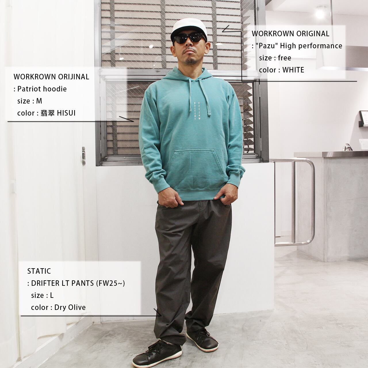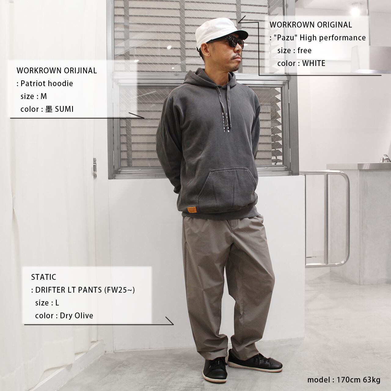 身長170cm 体重63k の店主でMサイズ着用です。