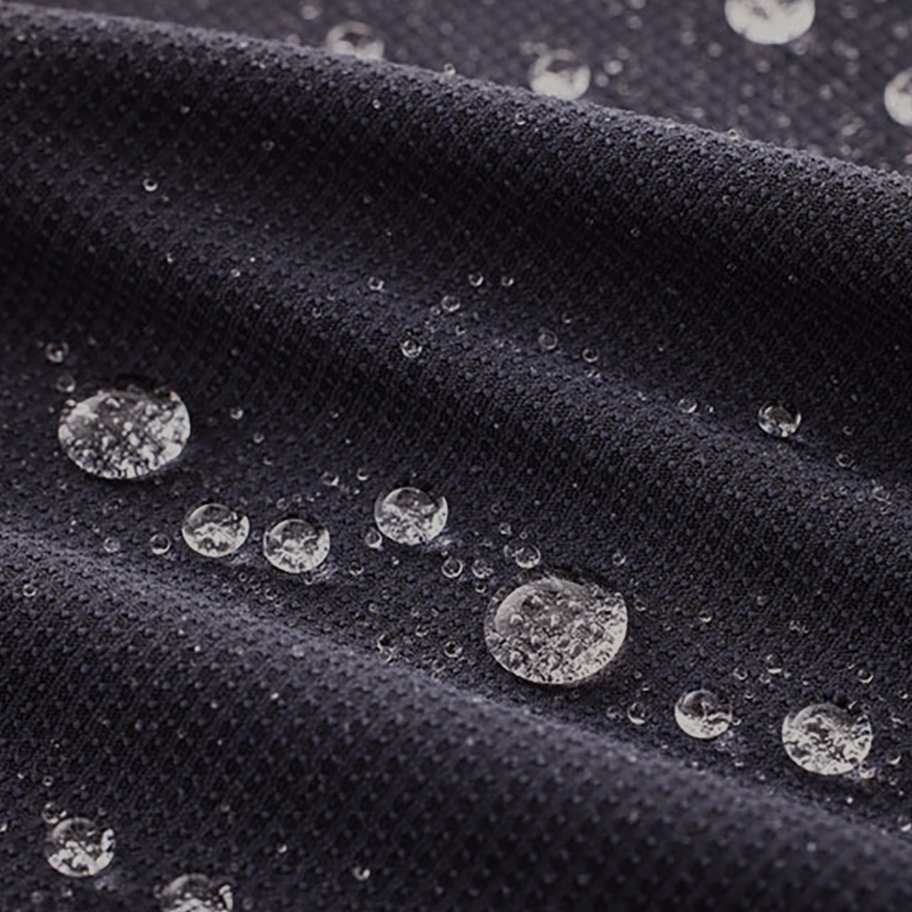 グリッド状の生地は通気性が高く、肌離れも良い。 超撥水の生地は水を溜められるほどだが、力を加えるとグリッドの穴から排出される。