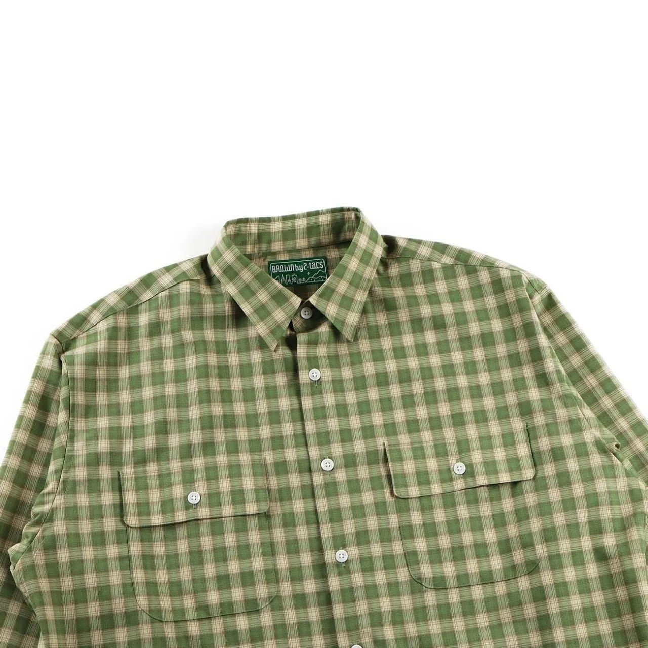 両胸にはフラップ付きのパッチポケット、袖カフスには調整可能な2つのボタンを配しています。